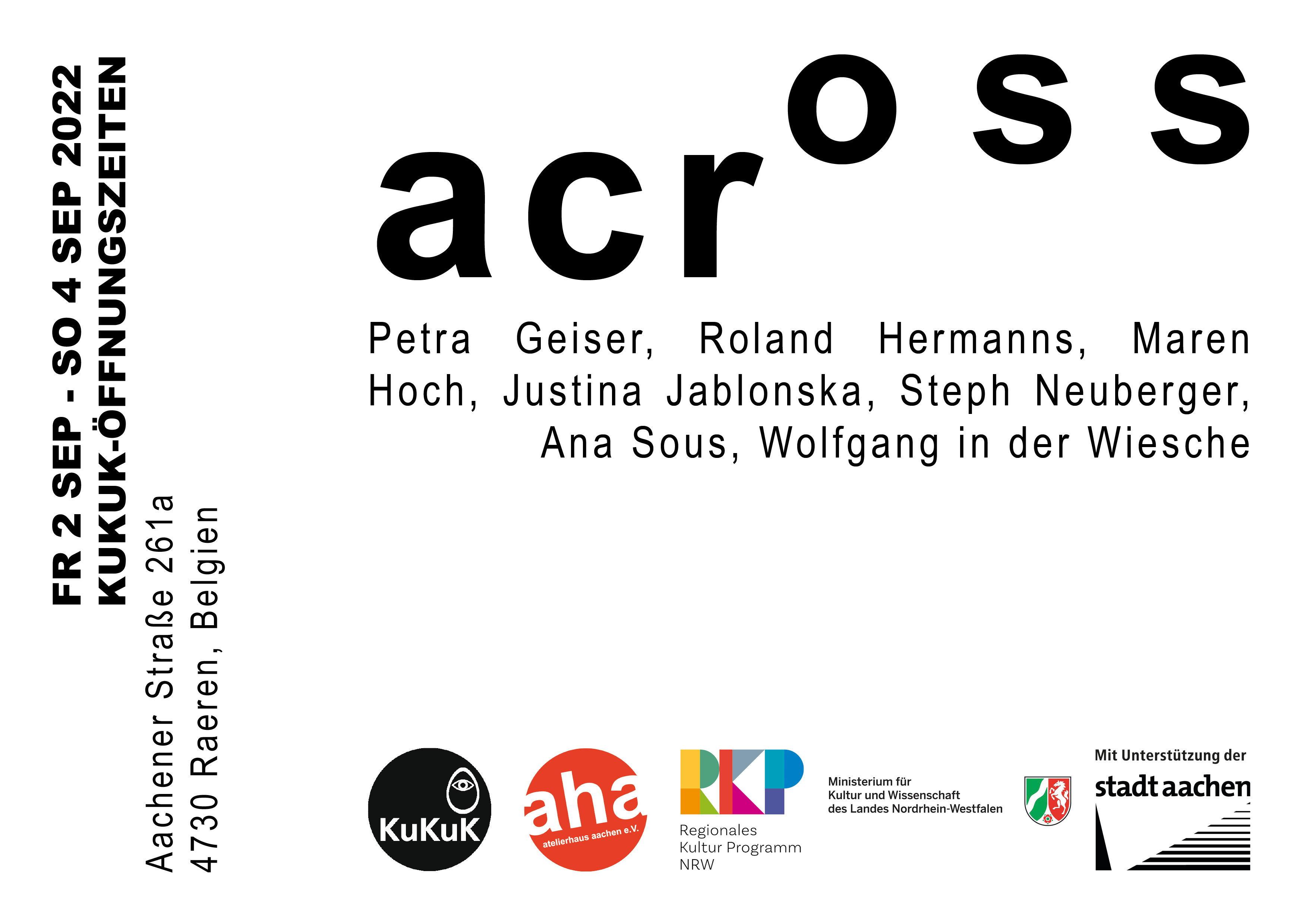 Beteiligte Künstler:innen | Petra Geiser, Roland Hermanns, Maren Hoch, Justina Jablonska, Steph Neuberger, Ana Sous, Wolfgang in der Wiesche