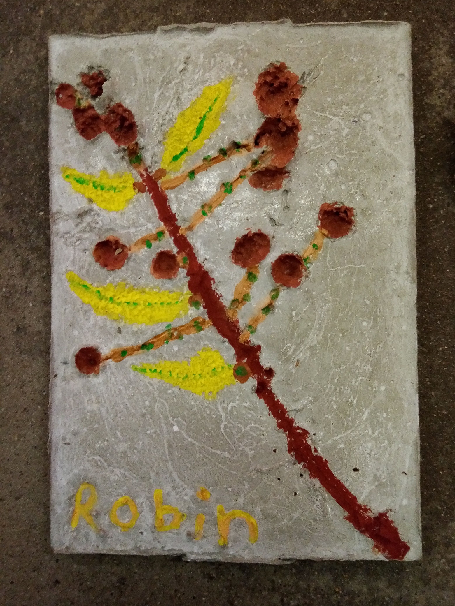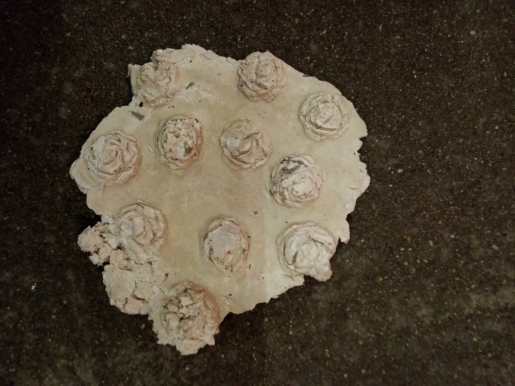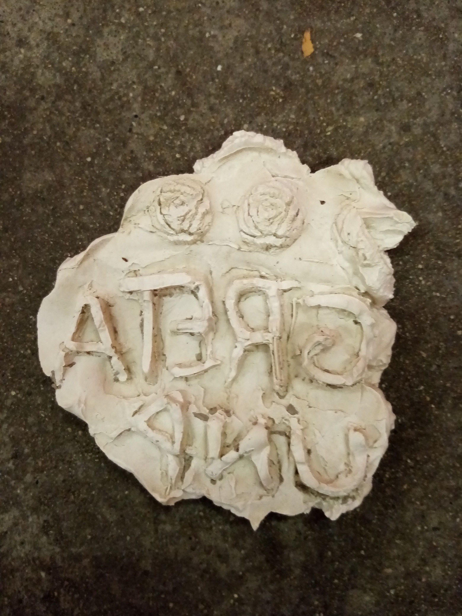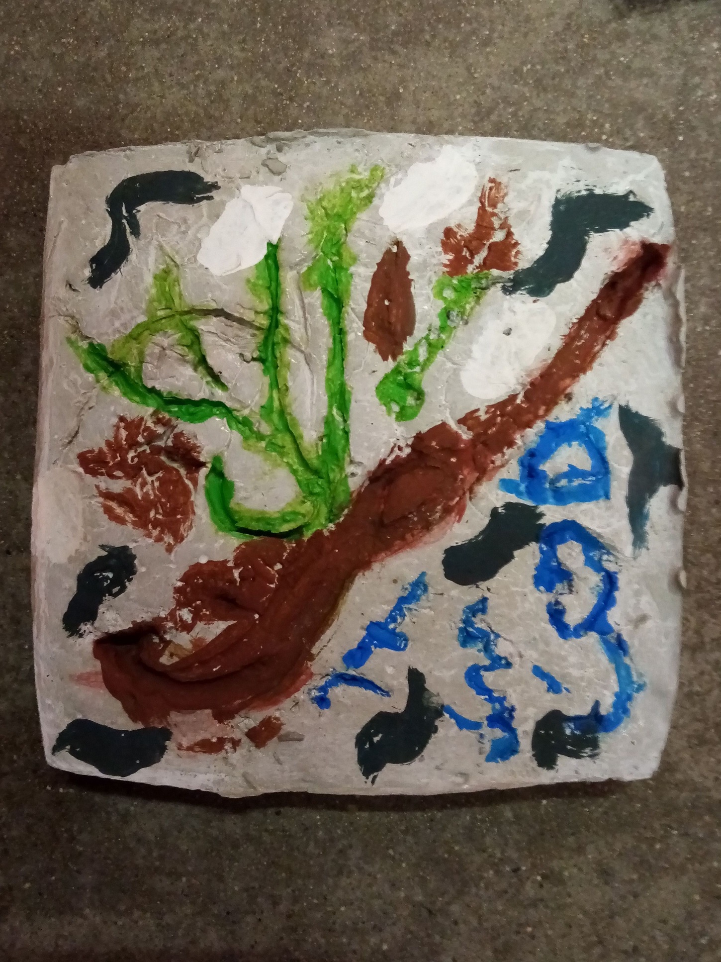Während der Arbeit im Workshopraum erstellten die Teilnehmenden im Laufe der Woche unter Anleitung von Kate Studley und Sascha Bayer Druckvorlagen aus Moosgummi und ähnlichen Materialien, außerdem lernten sie, wie sich Fundobjekte, aber auch Körperteile (Hände) in Gussmaterialien wie Ton, Gips und Zement abgießen und -drucken lassen. Dabei waren Experimente durchaus erwünscht. Die Kinder konnten sich in der künstlerischen Arbeit mit unterschiedlichen Materialien erproben und entdecken, wie sich die Materialien verhalten und welche Möglichkeiten des Druckens und Verarbeitens sie in sich bergen. Immer möglich war darüber hinaus das Zeichnen und das Malen mit Acrylfarben.